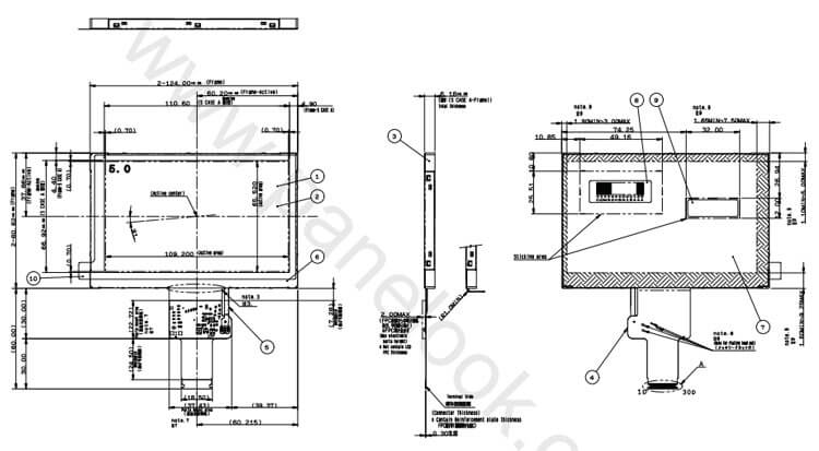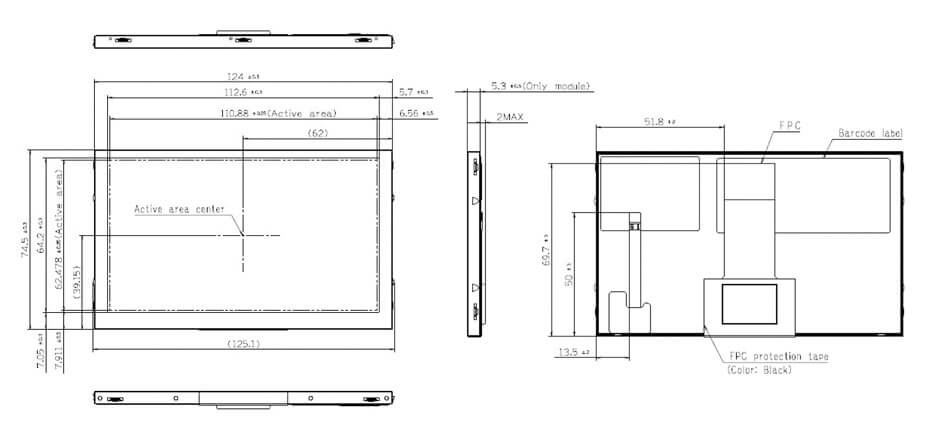 M050SWN1 R2 supports display 480(RGB)×234 with aspect ratio of 16:9 (W:H), whose pixels are arranged in RGB Vertical Stripe. As for mechanical detail, it features active area of 110.88(W)×62.478(H) mm, outline size of 124(W)×74.5(H)×7.3(D) mm, viewing area size of 112.6(W)×64.2(H) mm, with surface treament of Antiglare, Hard coating (2H), net weight of 91.5g (Typ.). As a TN, Normally White, Transmissive LCM product, M050SWN1 R2 can provides 585 cd/m² display brightness 500:1 transimissive contrast ratio, 70/70/50/60 (Typ.)(CR≥10) (L/R/U/D) viewing angle, best view direction on 6 o'clock , and response time of 15 (Typ.)(Tr+Td) ms. Gray scale or the brightness of the sub-pixel is determined with a 8-bit gray scale signal for each dot, thus presenting a palette of 16.7M colors, also with performance of color gamut 60% (NTSC). This product adopted 6S2P WLED as it's backlight systerm which was placed as Edge light type, external backlight driver is additionally needed. M050SWN1 R2 utilizes Parallel RGB (1 ch, 8-bit) as it's signal inputting systerm, which connected by 40 pins FPC with power supply voltage of 3.3V (Typ.). It's typical vertical frame rate (Fv) is 60Hz.