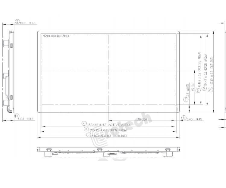 DJ070IA-20B (1280×768, LVDS, IPS, 930nits, -35~80°C, 163.35×107.12mm)