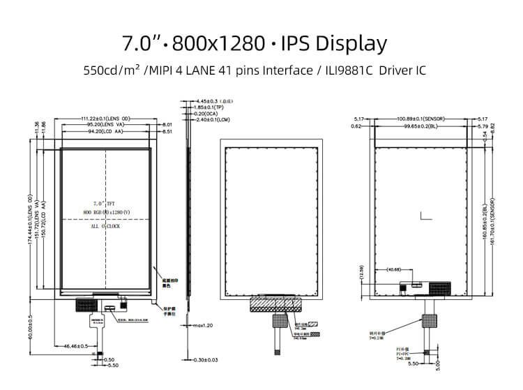 ET070WX03-T (800×1280, MIPI, IPS, 400nits, -20~70°C, 99.65×160.85mm)