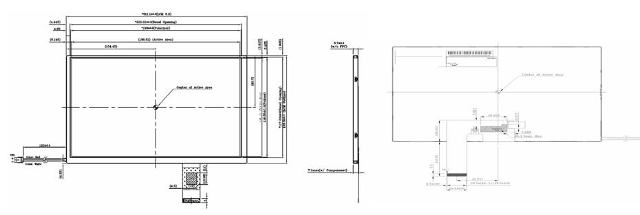 M090AWP4 R0 supports display 800(RGB)×480 (WVGA) with aspect ratio of 16:9 (W:H), whose pixels are arranged in RGB Vertical Stripe. It features active area of 198(W)×112.08(H) mm, outline size of 210.82(W)×126.96(H)×6.4(D) mm, viewing area size of 200.2(W)×114.28(H) mm, with surface treament of Antiglare, Hard coating (3H), net weight of 251g (Max.). As a TN, Normally White, Transmissive LCM product, M090AWP4 R0 can provides 750 cd/m² display brightness 700:1 transimissive contrast ratio, 70/70/50/70 (Typ.)(CR≥10) (L/R/U/D) viewing angle, best view direction on 6 o'clock , and response time of 12 (Typ.)(Tr+Td) ms. Gray scale or the brightness of the sub-pixel is determined with a 6-bit gray scale signal for each dot, thus presenting a palette of 262K colors, also with performance of color gamut 70% (NTSC). This product adopted 8S3P WLED as it's backlight systerm which was placed as Edge light type and have a working life time of 30K hours, external backlight driver is additionally needed. M090AWP4 R0 utilizes Parallel RGB (1 ch, 6-bit) as it's signal inputting systerm, which connected by 60 pins FPC with power supply voltage of 3.3/11.6/22/-7V (Typ.)(VCC/VDDA/VGH/VGL). It's typical vertical frame rate (Fv) is 60Hz.