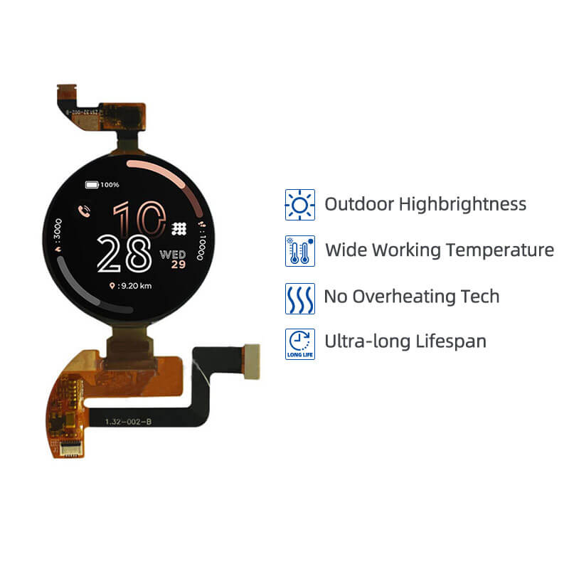 1.3 Inch High Brightness Display 700nits Sunlight Readable 466x466 MIPI OLED Display With On-Cell Touch.