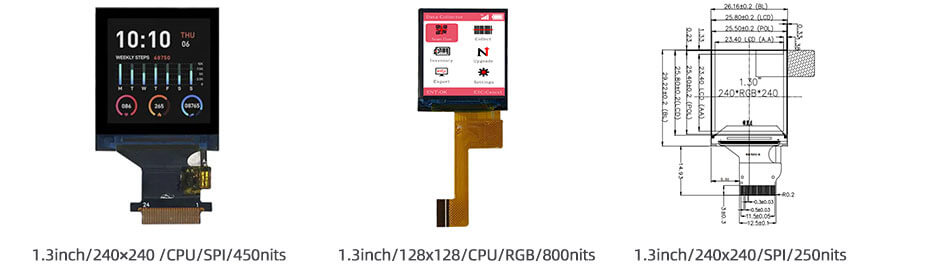 1.3 Inch Square Display 128x128 IPS CPU/RGB 800nits High Brightness TFT LCD Display.