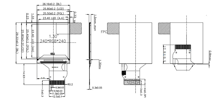 ET013QV05-T (240x240, CPU/SPI, IPS, 450nits, -20~70°C, 26.2x29.22mm)