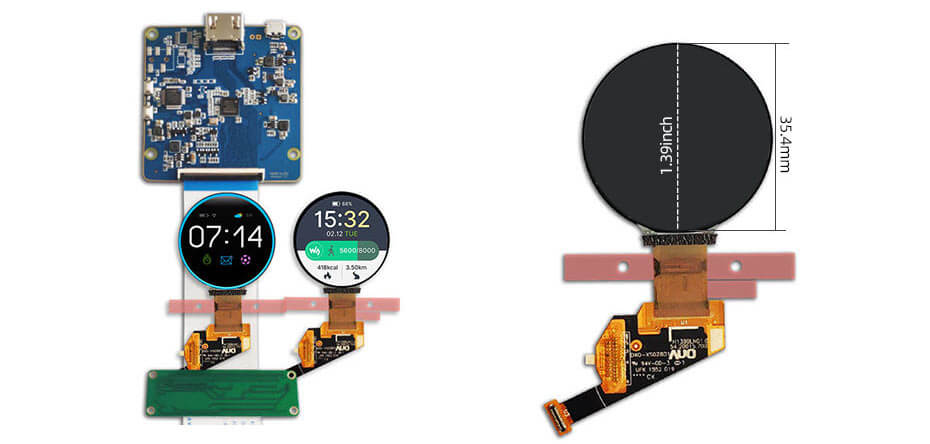E1393AA62.A is a 1.39 inch diagonal AM-OLED display screen product from EDO, it self emiting, without touch screen. E1393AA62.A supports display 400(RGB)×400 with aspect ratio of 1:1 (W:H), whose pixels are arranged in RGB Vertical Stripe, it's pixel density is 287 PPI. As for mechanical detail, it features active area of 35.4(W)×35.4(H) mm, outline size of 38.6(W)×40.5(H)×0.77(D) mm, net weight of 2.00g (Typ.). E1393AA62.A can provides 350 cd/m² display brightness 10000:1 transimissive contrast ratio, 85/85/85/85 (Typ.)(CR≥200) (L/R/U/D) viewing angle, best view direction on Symmetry , and response time of 2 (Max.)(Tr+Td) ms. Gray scale or the brightness of the sub-pixel is determined with a 8-bit gray scale signal for each dot, thus presenting a palette of 16.7M colors, also with performance of color gamut 100% (NTSC).