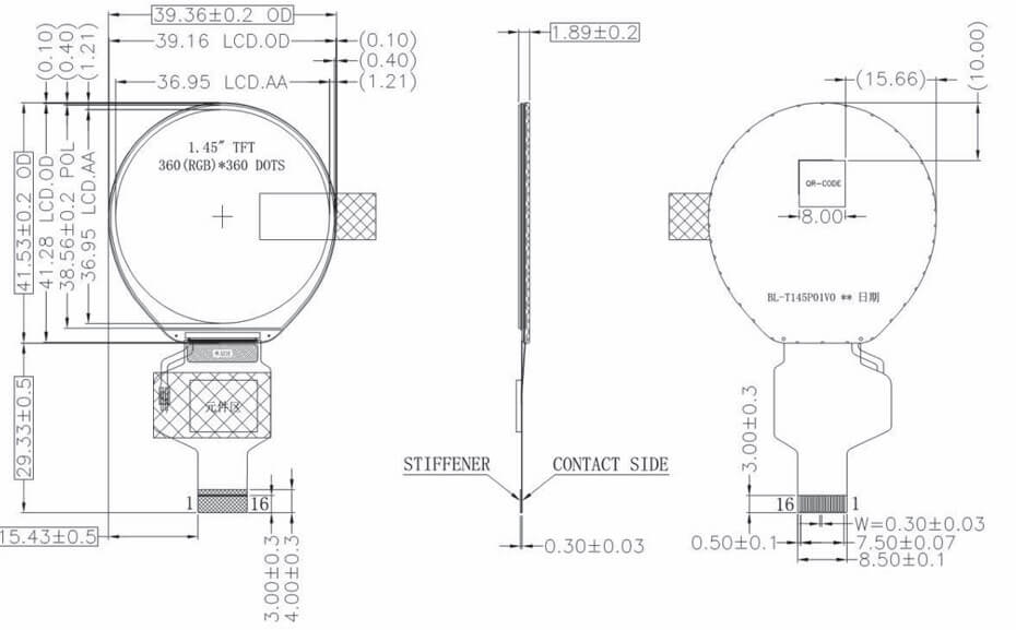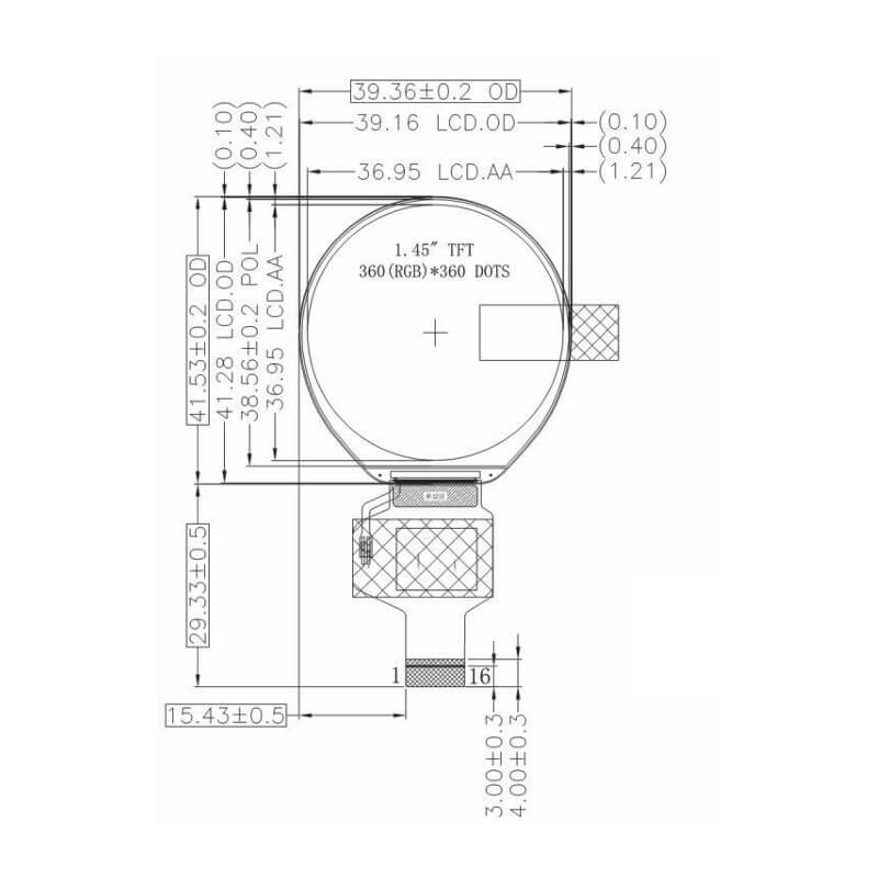 1.45 Inch Transflective Display IPS 360x360 SPI Sunlight Readable Circular LCD Display For Handheld PDA.