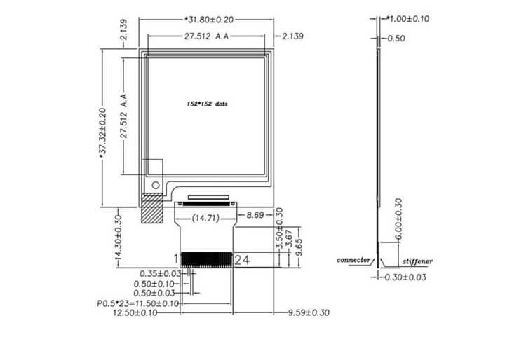 | 240*240 | ST7789V | 31.52*33.72*1.81 | 27.22*27.72 | SPI4 | 750 | |