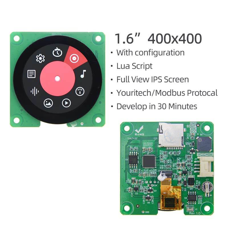 1.6 Inch Circular UI Serial Screen 400x400 configuration LUA Script Serial TFT Display With Capacitive Touch.
