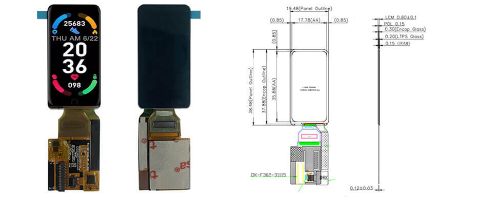 1.6 Inch High Brightness Display 700nits 228x460 MIPI/CPU/SPI OLED Display With On-Cell Touch.