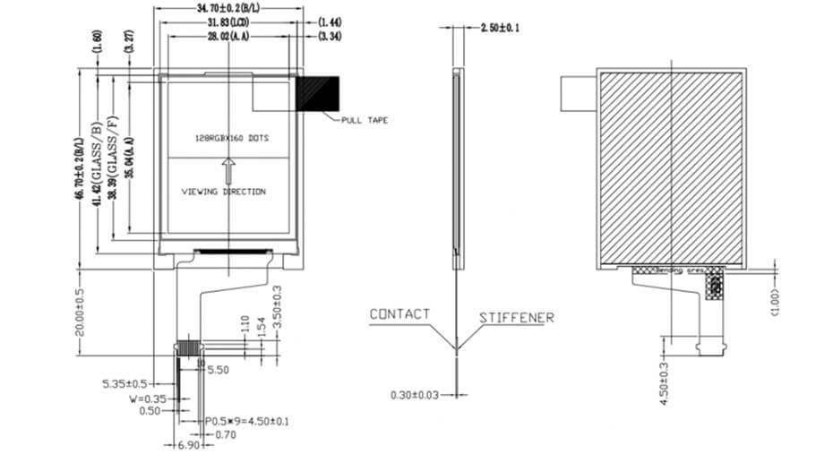 ET018QE02-SD (128x160, Parallel Data, 1000nits, -20~70°C, 34.7x46.7mm)