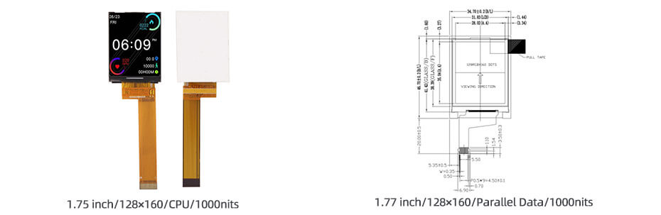 1.77 Inch High Brightness Display 1000nits 128x160 Parallel Data TFT LCD Display For Handheld PDA.