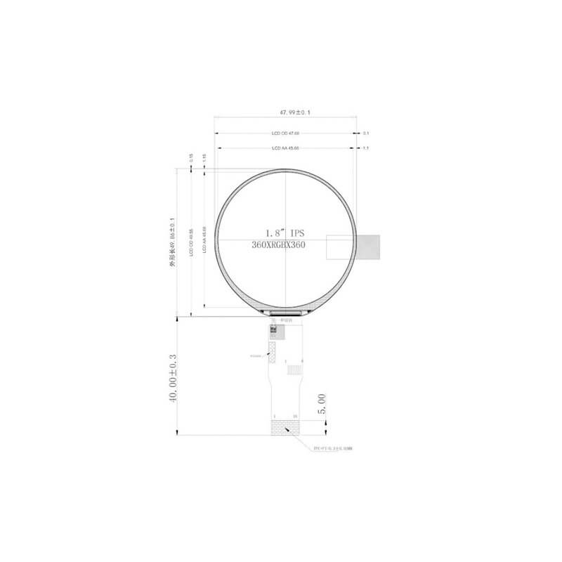 1.8 Inch Circular Display 360x360 SPI IPS Round LCD Display For Wearable.