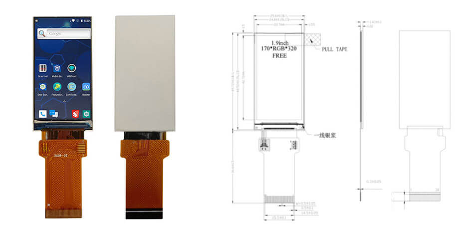 1.9 Inch Stretched Bar Display 170x320 IPS CPU/SPI TFT LCD Display.