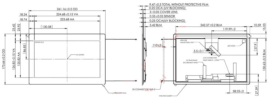 LCD304-101CTl1ARNTTR.3 (1280×720, LVDS, 2000nits, -30~85°C, 261.16×173.66mm)