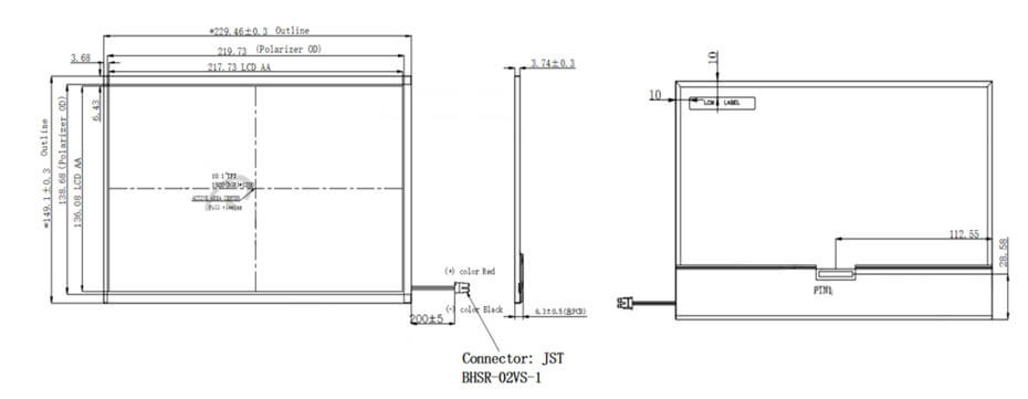 ET101WX20-K (LCD, 1280×800, MIPI, IPS, 550nits, -30~85°C, 229.06×148.7mm)