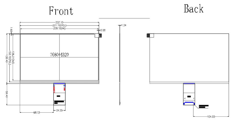 10.3 Inch 7680x4320 Monochrome LCD Display 8k MIPI IPS LCD Module For 3D Printer.