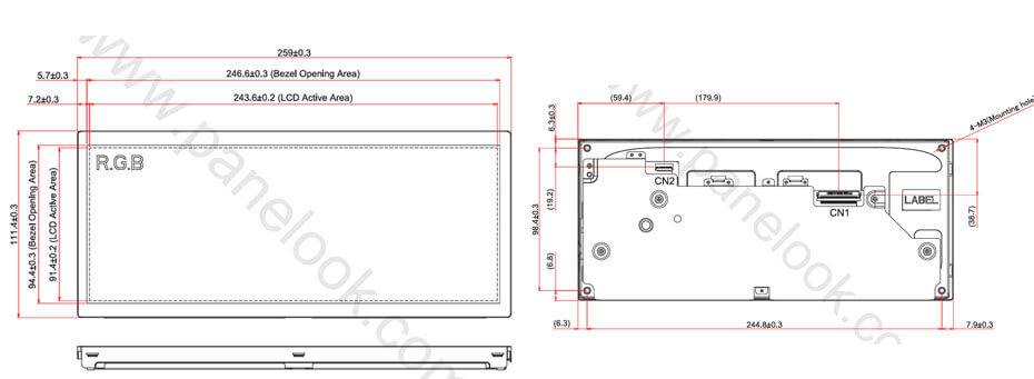 TM103XDGP01 (1920×720, LVDS, IPS, 800nits, -30~85°C, 262.04×110.3mm)