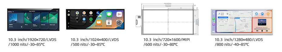 10.3 Inch Wide Temperature LCD Display 1280×480 LVDS -40°C to 85°C High Brightness 800nits TFT LCD Display.