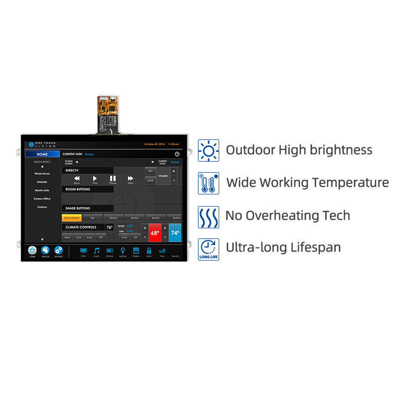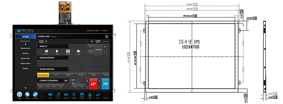 10.4 Inch High Brightness Display 800nits 1024x768 LVDS Wide Temperature TFT LCD Display With Capacitive Touch.
