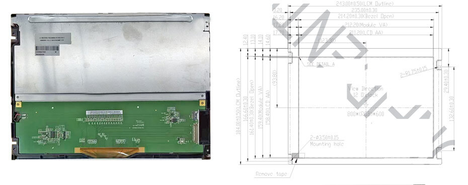 TM104SDHG40 (800×600, LVDS, TN, 400nits, -20~70°C, 243×184mm)