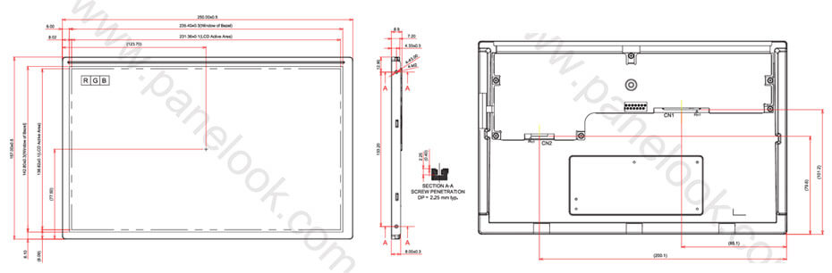 TX27D200VM0AAA supports display 1280(RGB)×768 (WXGA) with aspect ratio of 15:9 (W:H), whose pixels are arranged in RGB Vertical Stripe. As for mechanical detail, it features active area of 231.36(W)×138.816(H) mm, outline size of 250(W)×157(H)×9.4(D) mm, viewing area size of 235.4(W)×142.8(H) mm, net weight of 430g (Typ.). As a IPS, Normally Black, Transmissive LCM product, TX27D200VM0AAA can provides 1300 cd/m² display brightness 1000:1 transimissive contrast ratio, 85/85/85/85 (Typ.)(CR≥10) (L/R/U/D) viewing angle, best view direction on Symmetry , and response time of 24 (Typ.)(Tr+Td) ms. Gray scale or the brightness of the sub-pixel is determined with a 6-bit / 8-bit gray scale signal for each dot, thus presenting a palette of 262K/16.7M colors, also with performance of color gamut 50% (NTSC). This product adopted 4 strings WLED as it's backlight systerm which was placed as Edge light type and have a working life time of 100K hours, external backlight driver is additionally needed. TX27D200VM0AAA utilizes LVDS (1 ch, 6/8-bit) as it's signal inputting systerm, which connected by 20 pins Connector with power supply voltage of 3.3V (Typ.). It's typical vertical frame rate (Fv) is 60Hz.