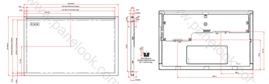 TX29D200VM0AAA is a 11.6 inch diagonal LTPS TFT-LCD display screen product, with an incorporated WLED lighting system, With LED Driver, without touch screen. TX29D200VM0AAA supports display 1920(RGB)×1080 (FHD) with aspect ratio of 16:9 (W:H), whose pixels are arranged in RGB Vertical Stripe. As for mechanical detail, it features active area of 256.32(W)×144.18(H) mm, outline size of 275(W)×163.8(H)×12.6(D) mm, viewing area size of 259.3(W)×147.18(H) mm, net weight of 554g (Typ.). As a IPS, Normally Black, Transmissive LCM product, TX29D200VM0AAA can provides 1200 cd/m² display brightness 1300:1 transimissive contrast ratio, 85/85/85/85 (Typ.)(CR≥10) (L/R/U/D) viewing angle, best view direction on Symmetry , and response time of 20 (Typ.)(Tr+Td) ms. Gray scale or the brightness of the sub-pixel is determined with a 8-bit gray scale signal for each dot, thus presenting a palette of 16.7M colors. This product adopted WLED as it's backlight systerm which was placed as Edge light type and have a working life time of 70K hours, With LED Driver. TX29D200VM0AAA utilizes LVDS (2 ch, 8-bit) as it's signal inputting systerm, which connected by 50 pins Connector with power supply voltage of 3.3V (Typ.). It's typical vertical frame rate (Fv) is 60Hz.