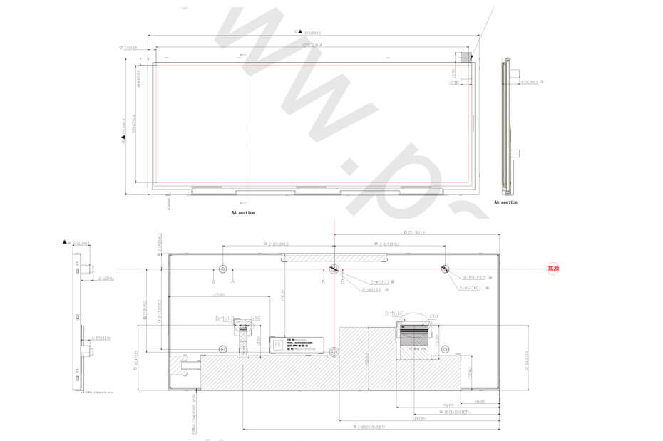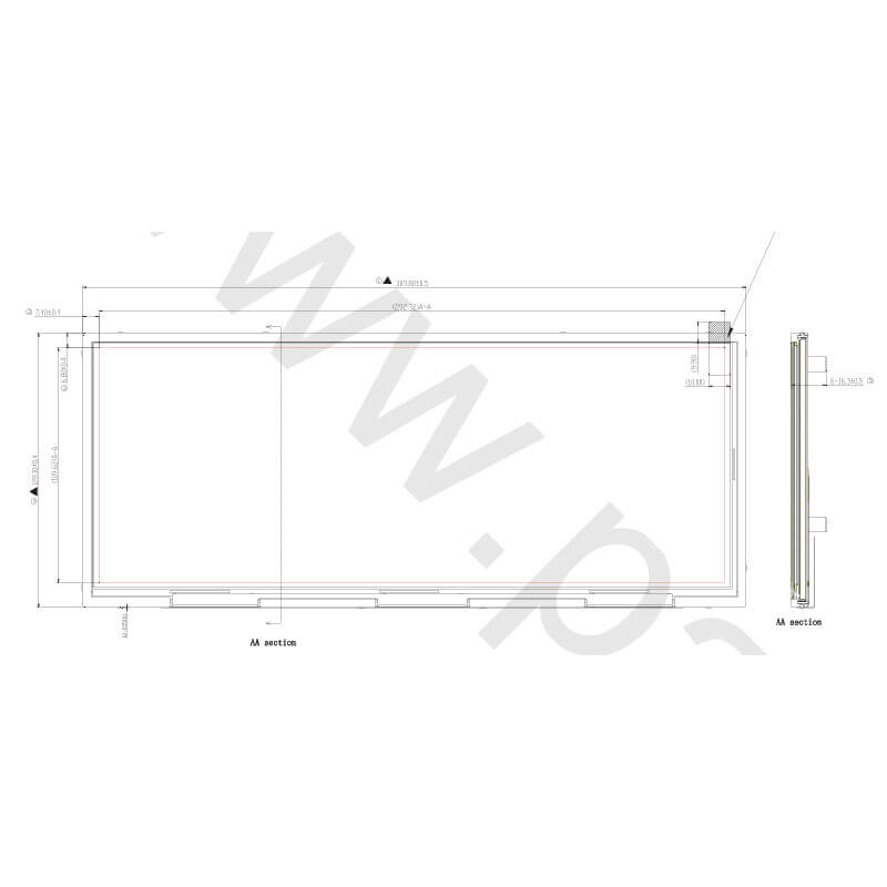 TM123XDKP11 is a 12.3 inch diagonal a-Si TFT-LCD display screen product from TIANMA, with a built-in WLED backlight, without backlight driver, without touch screen.TM123XDKP11 supports display 1920(RGB)×720 with aspect ratio of 8:3 (W:H), whose pixels are arranged in RGB Vertical Stripe. As for mechanical detail, it features active area of 292.32(W)×109.62(H) mm, outline size of 309.8(W)×128.1(H)×16.8(D) mm, with surface treament of Antiglare, net weight of 440g (Typ.). As a SFT, Normally Black, Transmissive LCM product, TM123XDKP11 can provides 800 cd/m² display brightness 1000:1 transimissive contrast ratio, 88/88/88/88 (Typ.)(CR≥10) (L/R/U/D) viewing angle, best view direction on Symmetry , and response time of 30 (Max.)(Tr+Td) ms. Gray scale or the brightness of the sub-pixel is determined with a 8-bit gray scale signal for each dot, thus presenting a palette of 16.7M colors, also with performance of color gamut 75% (NTSC). This product adopted 10S3P WLED as it's backlight systerm which was placed as Edge light type and have a working life time of 10K hours, external backlight driver is additionally needed. TM123XDKP11 utilizes LVDS (2 ch, 8-bit) as it's signal inputting systerm, which connected by 50 pins FPC with power supply voltage of 3.3V (Typ.). It's typical vertical frame rate (Fv) is 60Hz.