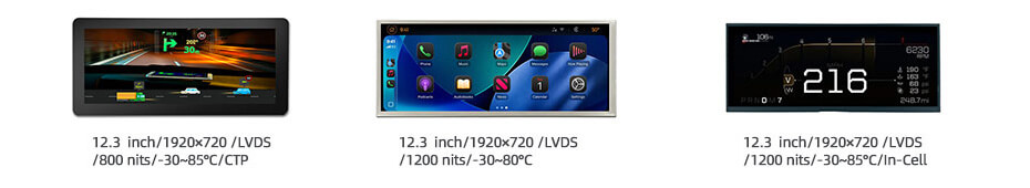12.3 Inch Wide Temperature LCD Display 1920×720 LVDS -30°C to 85°C High Brightness 1200nits TFT LCD Display With In-Cell Touch.