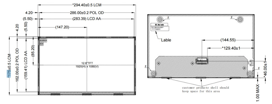 12.8 Inch High Brightness Display 1100nits 1920x1080 LVDS Wide Temperature TFT LCD Display.