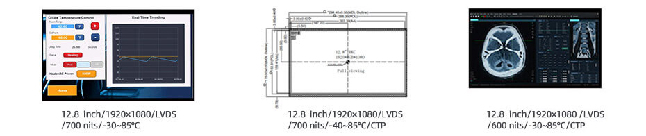 12.8 Inch Wide Temperature LCD Display 1920×1080 LVDS -30°C to 85°C High Brightness 700nits TFT LCD Display.