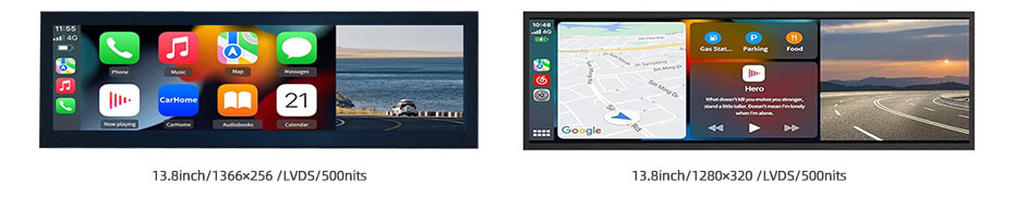 13.8 Inch Stretched Bar Display 1366x256 IPS 500nits High Brightness LVDS TFT LCD Display.