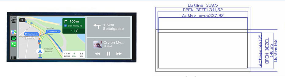 14.3 Inch Stretched Bar Display 1280x512 IPS LVDS TFT LCD Display.