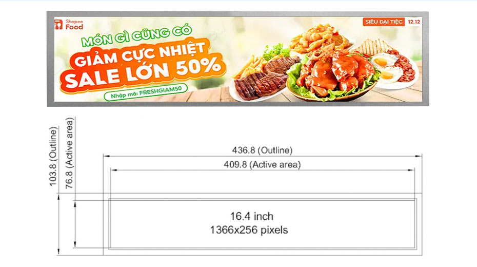 ET164BA02-IL (1366x256, LVDS, IPS, 500nits, 0~50°C, 436.8x103.8mm)