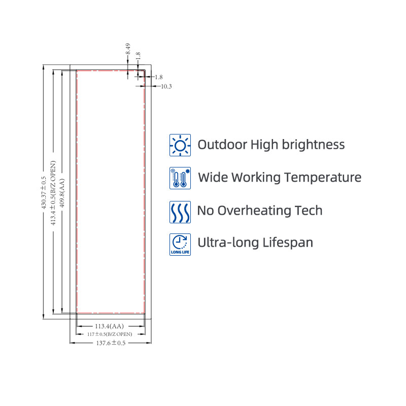 16.8 Inch High Brightness Display 800nits IPS 1366x378 LVDS TFT LCD Display.