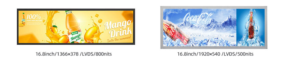 16.8 Inch Stretched Bar Display 1920x540 IPS 500nits High Brightness LVDS TFT LCD Display.