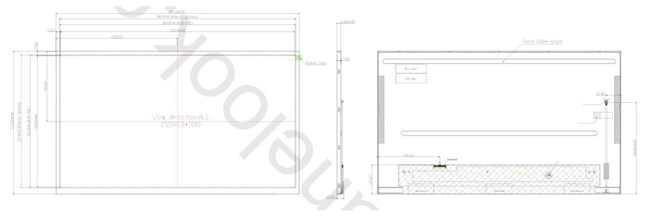 P1730FHF1MA10 is a 17.3 inch diagonal a-Si TFT-LCD display screen with a built-in WLED backlight, without backlight driver, without touch screen. P1730FHF1MA10 supports display 1920(RGB)×1080 (FHD) with aspect ratio of 16:9 (W:H), whose pixels are arranged in RGB Vertical Stripe. As for mechanical detail, it features active area of 381.888(W)×214.812(H) mm, outline size of 397.1(W)×234(H)×11.9(D) mm, viewing area size of 384.89(W)×217.81(H) mm, with surface treament of Antiglare, net weight of 781g (Typ.). As a SFT, Normally Black, Transmissive LCM product, P1730FHF1MA10 can provides 1200 cd/m² display brightness 1700:1 transimissive contrast ratio, 88/88/88/88 (Typ.)(CR≥10) (L/R/U/D) viewing angle, best view direction on Symmetry , and response time of 35 (Typ.)(Tr+Td) ms. Gray scale or the brightness of the sub-pixel is determined with a 8-bit gray scale signal for each dot, thus presenting a palette of 16.7M colors, also with performance of color gamut 75% (NTSC). This product adopted WLED as it's backlight systerm which was placed as Edge light type and have a working life time of 50K hours, external backlight driver is additionally needed. P1730FHF1MA10 utilizes eDP (2 Lanes) as it's signal inputting systerm, which connected by 30 pins Connector with power supply voltage of 3.3V (Typ.). It's typical vertical frame rate (Fv) is 60Hz.