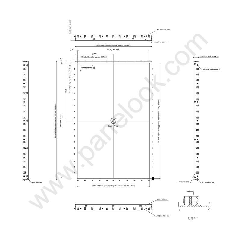 COG-VLBJT035-01 supports display 1200×1920(RGB) (WUXGA) with aspect ratio of 10:16 (W:H), whose pixels are arranged in RGB Horizontal Stripe. As for mechanical detail, it features active area of 234(W)×374.4(H) mm, outline size of 250.8(W)×386.8(H)×19.1(D) mm. As a ADS, Normally Black, Transmissive LCM product, COG-VLBJT035-01 can provides 800 cd/m² display brightness 1000:1 transimissive contrast ratio, 85/85/85/85 (Typ.)(CR≥10) (L/R/U/D) viewing angle, best view direction on Symmetry , and response time of 40 (Max.)(Tr+Td) ms. Gray scale or the brightness of the sub-pixel is determined with a 8-bit gray scale signal for each dot, thus presenting a palette of 16.7M colors, also with performance of color gamut 71% (NTSC). This product adopted 12S6P WLED as it's backlight systerm which was placed as Edge light type, With LED Driver. COG-VLBJT035-01 utilizes LVDS (2 ch, 8-bit) as it's signal inputting systerm, which connected by 30 pins Connector with power supply voltage of 5.0V (Typ.). It's typical vertical frame rate (Fv) is 75Hz.