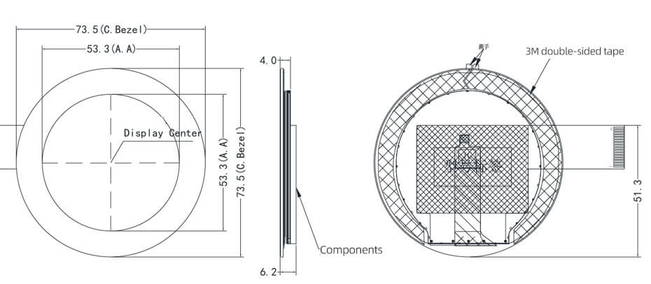 Dimensions: 73.5mm x 73.5mm x 6.2mm (MAX, including TP and FPC).