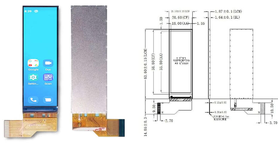 2.3 Inch Stretched Bar Display 100x310 CPU TFT LCD Display.
