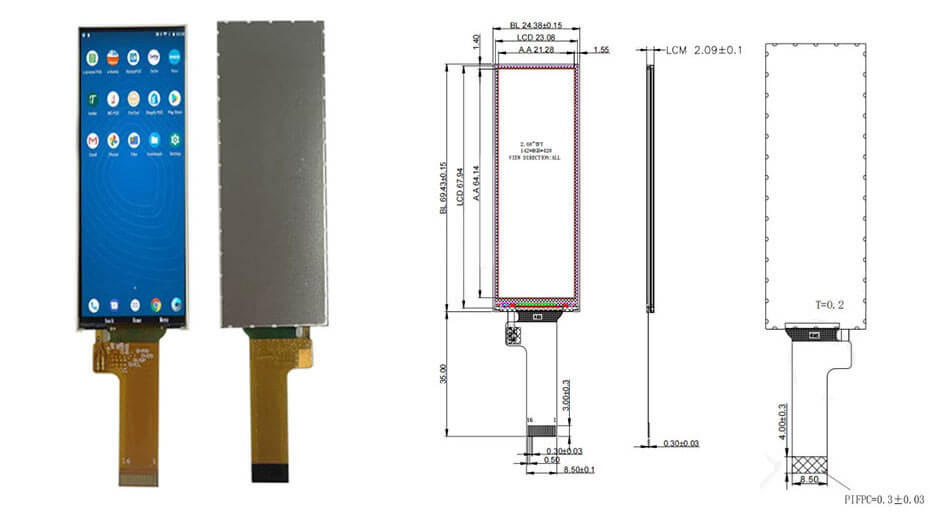2.68 Inch Stretched Bar Display 142x428 IPS SPI TFT LCD Display.