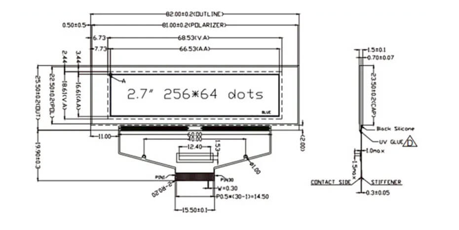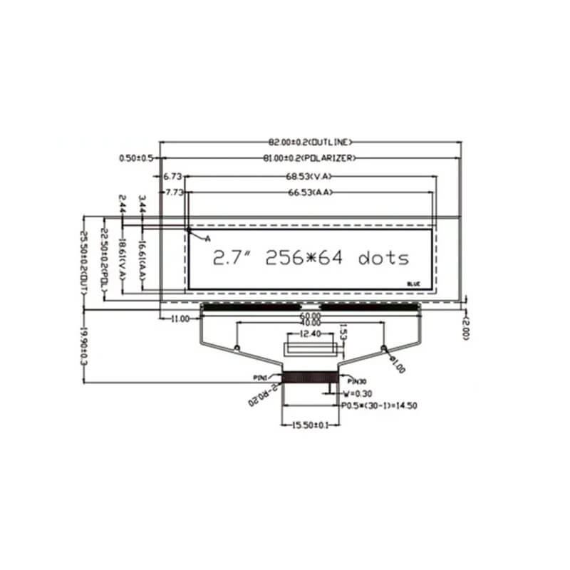 ET027PM01-X (LCD, 256×64, CPU/RGB/SPI, IPS, 60nits, -30~80°C, 82×25.5mm)