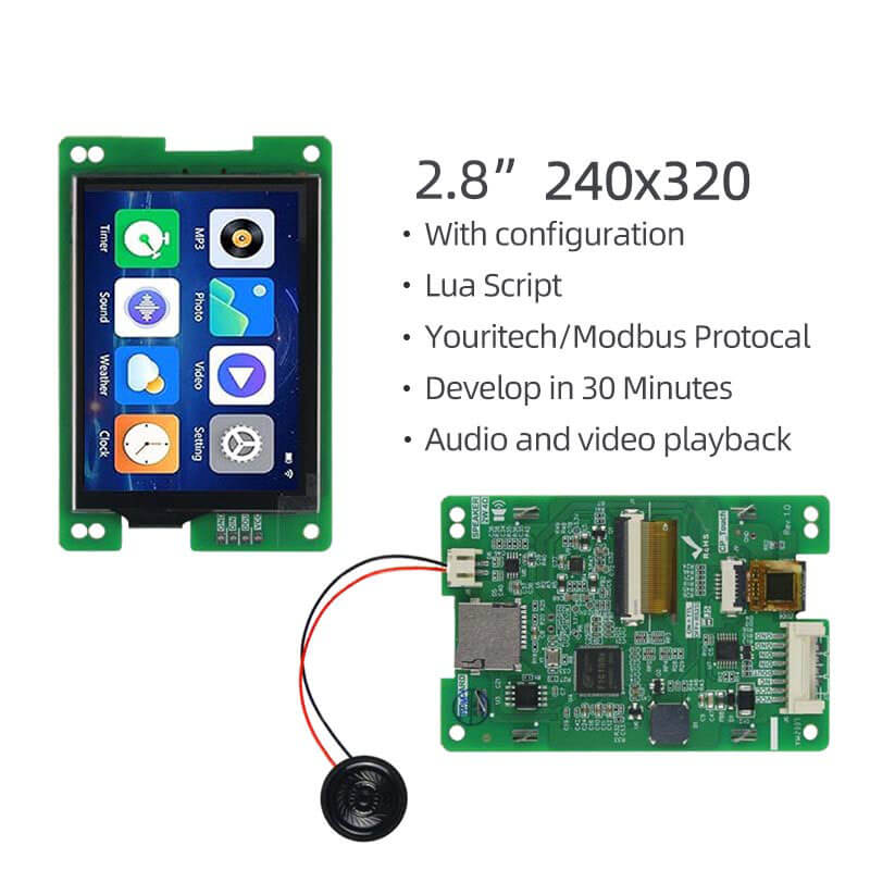 2.8 Inch Serial Screen 240x320 Audio Configuration Script Serial TFT Display With Capacitive Touch/Resistive Touch For Medical.