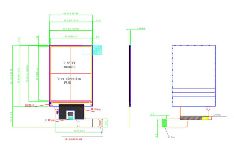 2.88 Inch Square Display 480x640 RGB/MIPI LCD Display With Driver Board For Digital Camera.