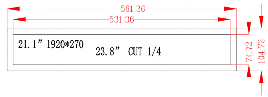 21.1 Inch Stretched Bar Display 1920x270 IPS 500nits High Brightness LVDS TFT LCD Display.