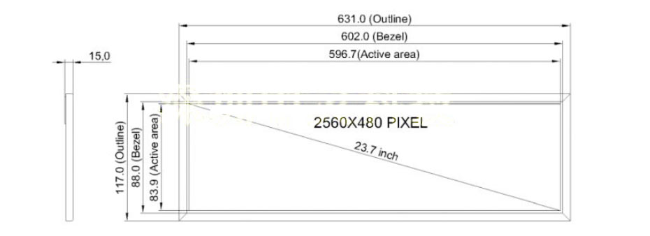 ET237BA01-IL (2560x480, LVDS, IPS, 500nits, 0~50°C, 631x117mm)