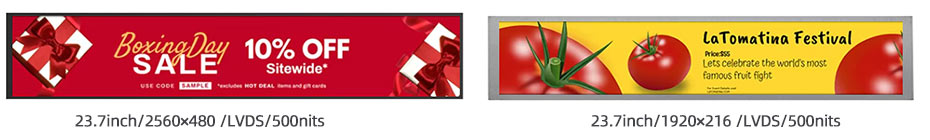 23.7 Inch Stretched Bar Display 2560x480 IPS High Brightness 500nits LVDS TFT LCD Display.