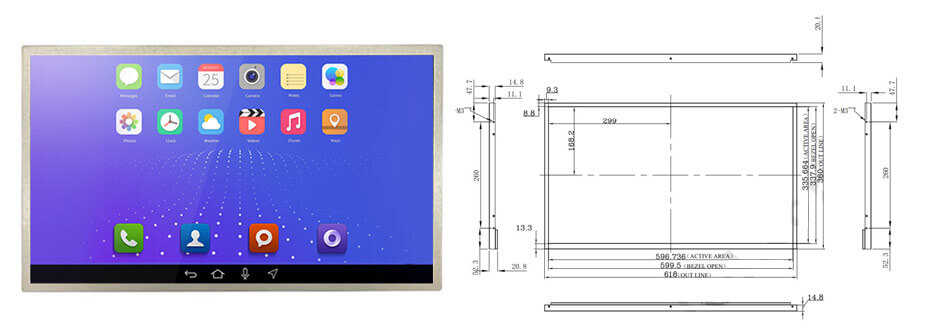 27 Inch High Brightness Display 1500nits IPS 3840x2160 LVDS TFT LCD Display.