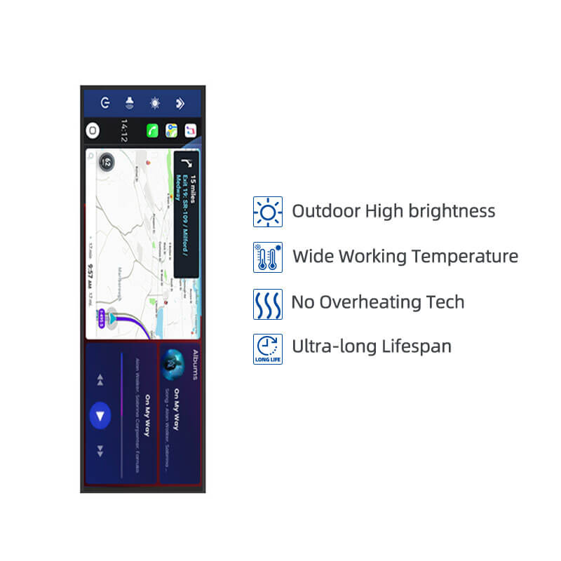 28.5 Inch High Brightness Display 2000nits IPS 1366x384 LVDS Stretched Bar Display.