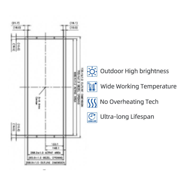 29.3 Inch High Brightness Display 1000nits IPS 1920x710 LVDS Stretched Bar Display.