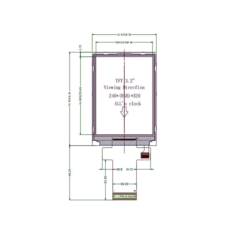 ET32005A-01 (240x320, CPU/RGB/SPI, 280nits, -20~70°C, 55.04x77.7mm)