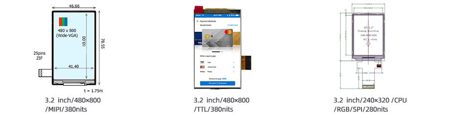 COM32H3P68ULC (480x800, MIPI, 380nits, -20~70°C, 46.66x78.55mm)